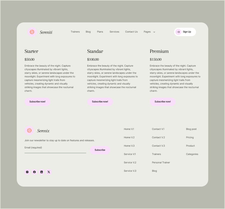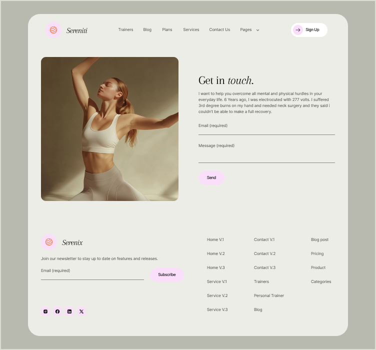 Sereniti Webflow Template includes over 12 pages in total, with more than 25 sections.