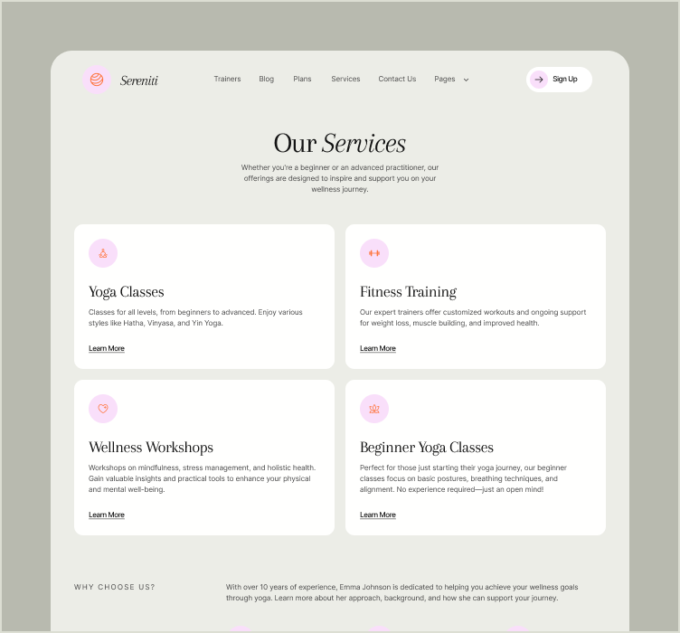 You can easily customize the Sereniti Webflow Template to fit your company needs and requirements.